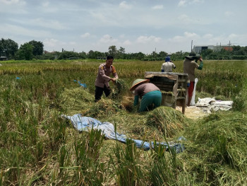 Bhabinkamtibmas Desa Banjarsari Apresiasi Panen Padi Warga sebagai Wujud Keberhasilan Ketahanan Pangan